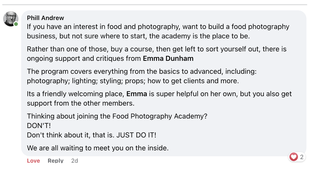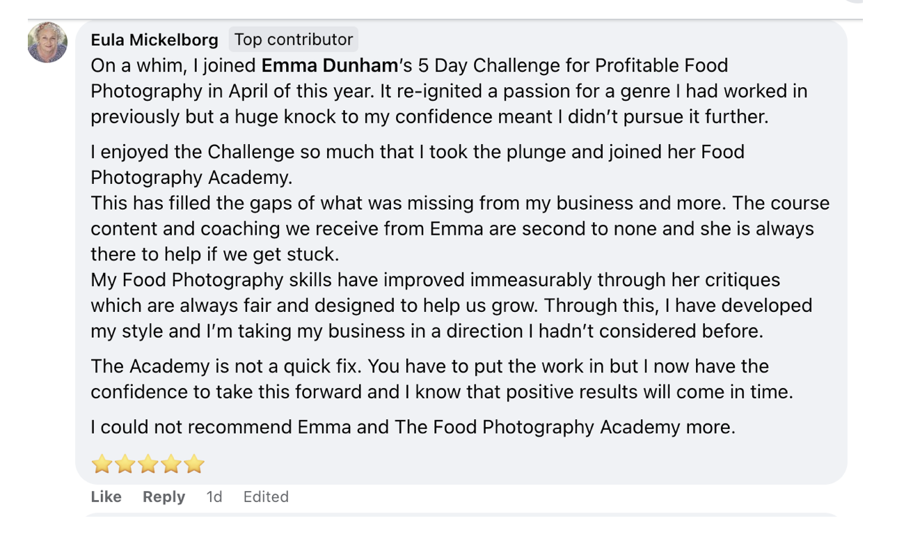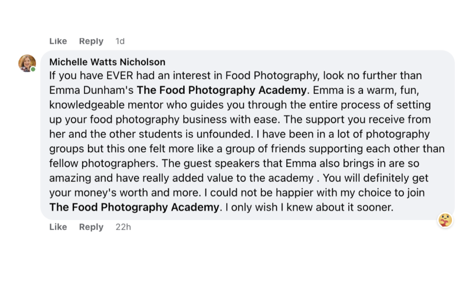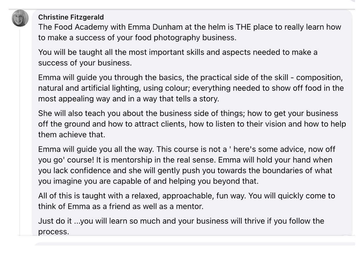 I could not recommend Emma and the Food Photography Academy more.